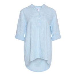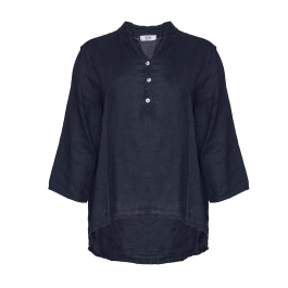 Den samme lækre fineste hørkvalitet. Skjorten har fortsat de kendte trekvartærmer og samme gode pasform. Skjorten har som bekendt en lille V-hals foran med knapper.