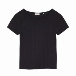 Anna Cap Sleeve Tee fra Skall Studio er en feminin T-shirt i blød økologisk bomuld med et smukt hulmønster. Den sorte farve giver et klassisk og elegant udtryk, mens pointelle-strukturen tilfører et let og romantisk touch.