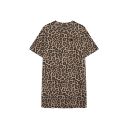 Kjolen er fremstillet i en let bomulds kvalitet, der falder smukt på kroppen. Designet inkluderer en klassisk rund hals med korte ærmer. Leopardprintet giver kjolen et trendy, men tidløst touch, der passer perfekt til både støvler, heels og sneakers.