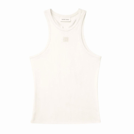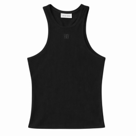 Modellen er designet med rund hals og brede stropper, som skaber en flatterende pasform. Den bløde og stretchy kvalitet giver et tæt, komfortabelt fit, der følger kroppen uden at føles stram. Det diskrete monogram på brystet tilfører et elegant signatur-touch.