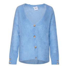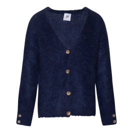 Lækker navy blå cardigan fra Tiffanys eget mærke i en dejlig uldblanding. Den fine cardigan har v-hals, fire fine knapper ned foran samt to knapper på ærmet. Et must-have til garderoben!