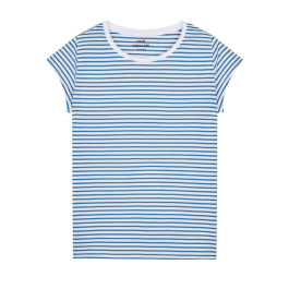 Mads Nørgaard Fine Jersey Teasy Tee Fav Stripe, Briliant White/bright Cobalt