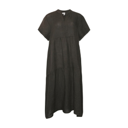 Ilona-kjolen i farven Dark Beluga fra Tiffany er en elegant og alsidig tilføjelse til din garderobe. Kjolen har et kort ærme og v-udskæring og har en rummelig pasform, som gør den behagelig at have på. Denne kjole er perfekt på en varm sommerdag, men kan også styles med bukser eller strømpebukser under. Kjolen redder enhver tøjkrise, fordi med den kjole er du flot klædt på.