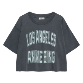 Johnny Cropped Tee i Washed Grey er en cool og moderne T-shirt fra Anine Bing med et afslappet, LA-inspireret udtryk. T-shirten er fremstillet i blød bomuld og designet med et markant logoprint på fronten, som giver et grafisk og tidløst look.