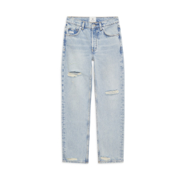 Jeansene er fremstillet i fast denim uden stretch, hvilket giver et autentisk og struktureret look. Den klare blå vask gør dem alsidige og nemme at style både til hverdagsbrug og mere elegante outfits.