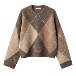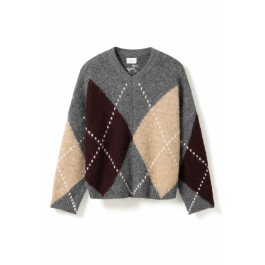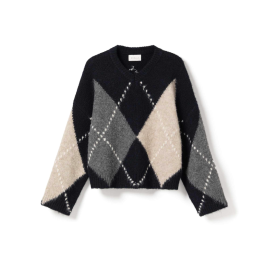 Lai Knit fra Noella i farven Ash Brown Mix er en blød og chunky strik med et smukt argyle-mønster i Ash Brown, beige og grå nuancer.