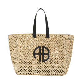 Large Rio Tote fra ANINE BING i farven Olive er en rummelig og stilren tote, skabt som den perfekte kombination af funktionalitet og afslappet luksus. Tasken er fremstillet i et smukt flettet materiale, der giver et naturligt, sommerligt udtryk, mens de robuste stropper og det ikoniske ANINE BING-monogram på fronten tilfører et markant og genkendeligt design.