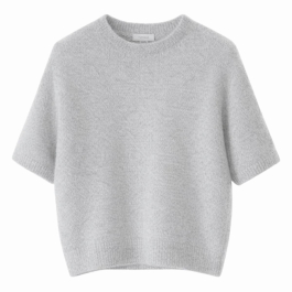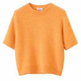 Modellen har korte ærmer og et enkelt design, der balancerer den fine farve med et tidløst snit. Peach-farven tilfører varme og lethed til garderoben.
