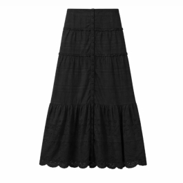 Nederdelen har elastisk talje og knaplukning foran, hvilket sikrer både komfort og et afslappet fald. De fine pintucks og broderie anglaise-detaljer skaber bevægelse og lethed, mens den vidde pasform giver et luftigt og feminint look.