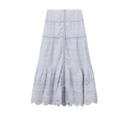 Paoline Skirt i Light Blue er en let og feminin lang nederdel fra Isabel Marant, designet i blød, økologisk bomuld med fine blonder og dekorative detaljer. Den lyseblå farve og de romantiske elementer giver nederdelen et elegant, boheme-inspireret udtryk, som er karakteristisk for Isabel Marants æstetik.