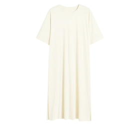 Smukkeste Polly t-shirt kjole i den blødeste jersey bomuldskvalitet i off white. Den er onesize og har i sit lette stof og brede pasform et perfekt snit og fald til alle størrelser. Den har slids i siderne.
